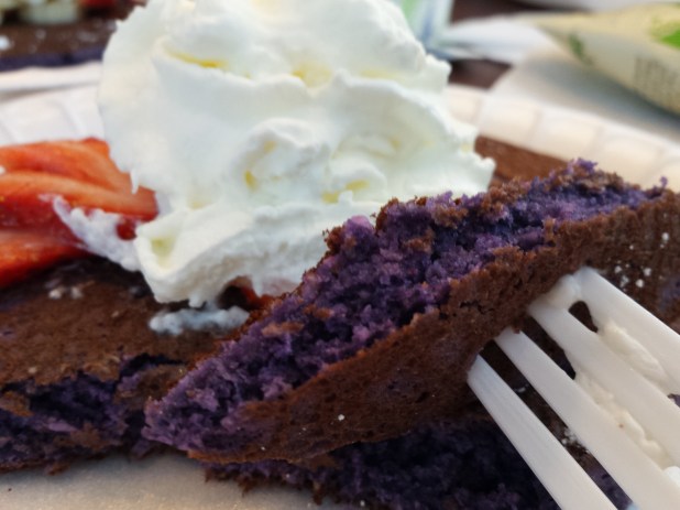 We had the ube (purple yam) pancakes, which are technically not on the menu, but I had heard about them and they were accommodating in making them for us. The uniquely purple pancakes had the subtly sweet, starchy and slightly vanilla-like flavor, so they were definitely made with plenty of the real stuff. Your first time trying them (be sure to ask for them!), don’t expect a fluffy interior so much as a cake-like texture, which actually goes quite well with the ube flavor. Delicious, and a must-try for ube lovers and curious foodies.
