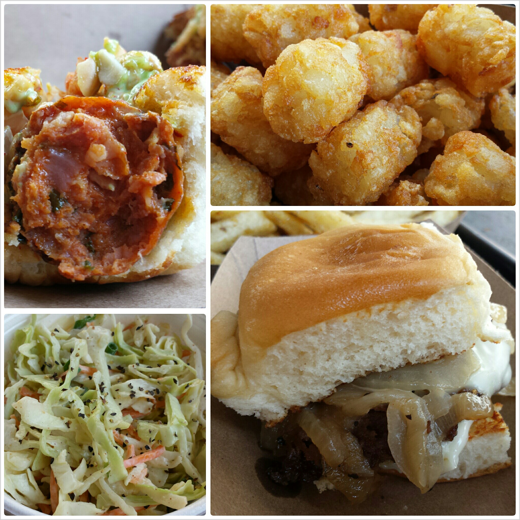 At this particular lunchtime feast, there were tater tots, French fries and coleslaw galore. So many sides, plus Tony insisted we try a couple happy hour items as well. So good! Let’s just say that if you came here a few times a week, every week, you still wouldn’t get bored anytime soon.